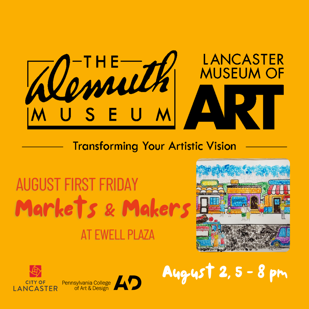 Each First Friday from May to October Ewell Plaza hosts First Friday Markets & Makers which is held in partnership with Pennsylvania College of Art & Design and features arts organizations hosting free make-and-take projects for all ages as well as an arts market which provides opportunities for emerging artists to show and sell their work. Visit First Friday Markets & Makers and leave inspired!